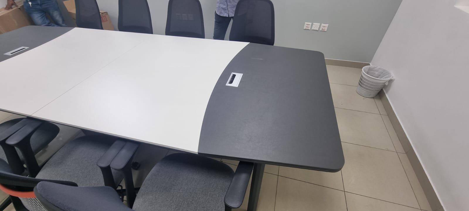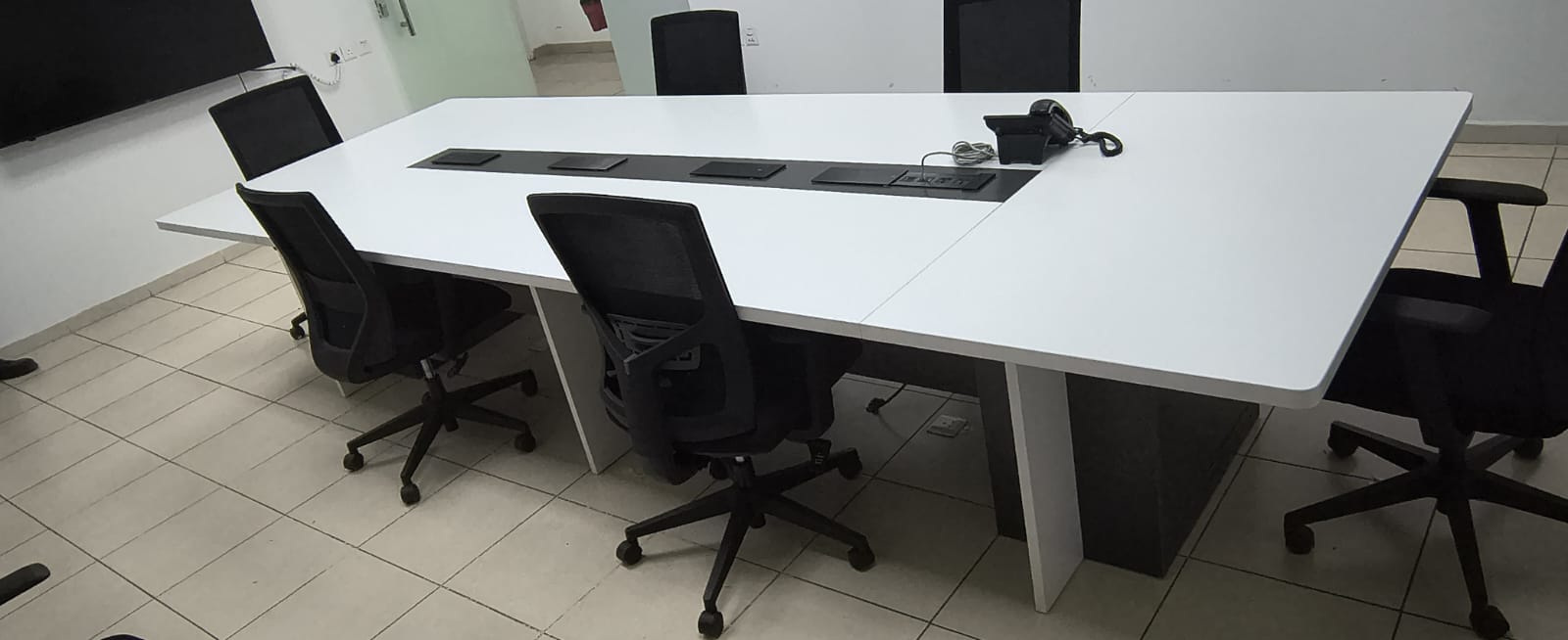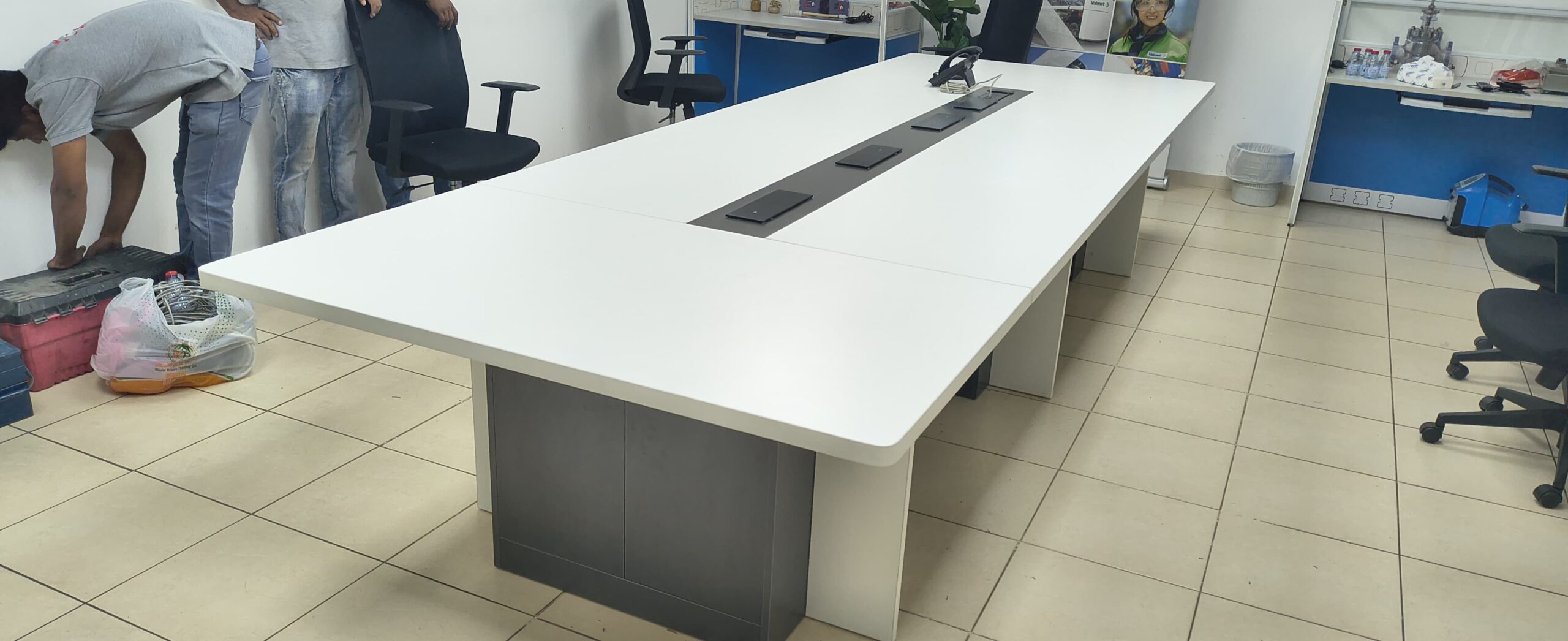 A durable and elegant wooden office meeting table designed for boardrooms and conference spaces, offering ample seating and a professional finish to enhance any workspace.